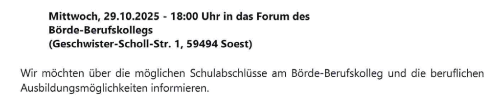 gerne weisen wir auf eine Einladung zur Informationsveranstaltung des Börde-Berufskollegs Soest hin: